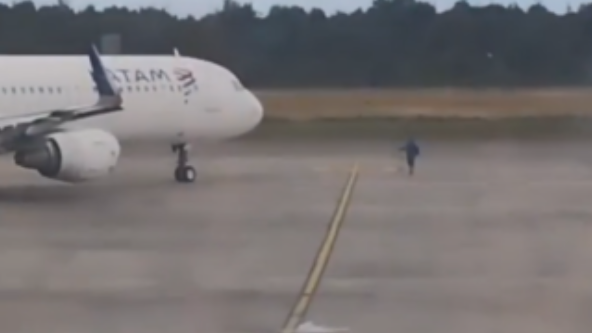 Homem tenta parar avião após perder voo e é preso no Chile; vídeo