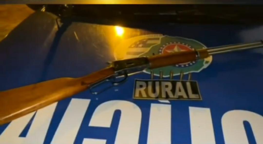 Ao fazer a revista no veículo, a polícia encontrou uma carabina cal.38 com quatro munições intactas e uma cápsula deflagrada, usada para abater o gado.