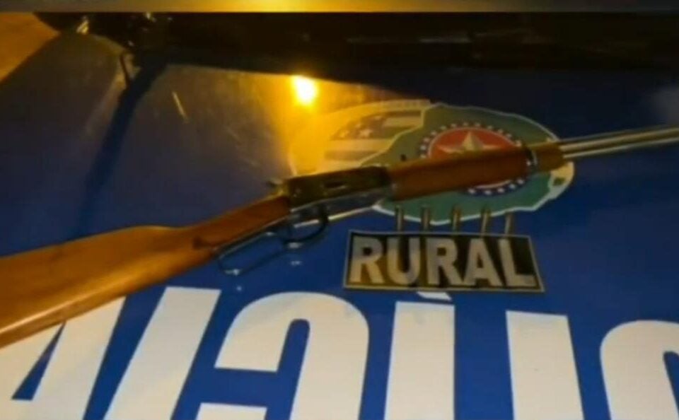 Ao fazer a revista no veículo, a polícia encontrou uma carabina cal.38 com quatro munições intactas e uma cápsula deflagrada, usada para abater o gado.