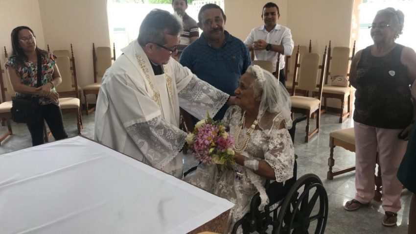 O marido, seu Cícero Rosa, tem 54 anos e é agricultor. Ele juntou as famílias dos dois noivos, cerca de 10 vizinhos e alguns profissionais do Hospital São Vicente de Paula, onde Maria de Lourdes está internada, para arquitetar o matrimônio, que foi realizado na capela do hospital.