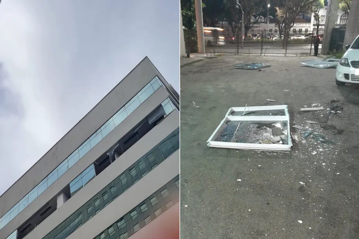 Janelas despencam do sexto andar do prédio do governo após vendaval no Rio