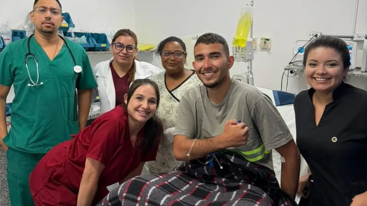 “O paciente está lúcido, apresenta sinais de desidratação leve, hematomas em membros inferiores e assaduras na região inguinal. Ele foi submetido à profilaxia medicamentosa e reidratação endovenosa”, informou a pasta.