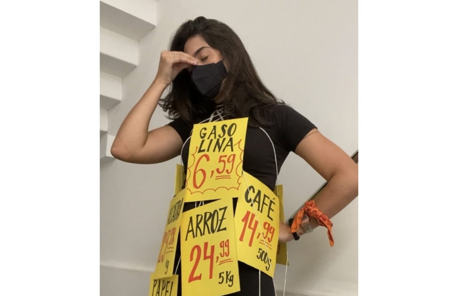 “A realidade de quem vive aqui no Brasil está assustadora demais, precisei escolher entre as coisas mais horripilantes que estamos vivendo e lembrei dos preços dos supermercados. Pesquisei na internet, em quatro sites de estabelecimentos daqui e fiz uma média de preços. Comprei os papéis, fiz as placas e minha fantasia estava pronta, fui de realidade”, disse a social media ao G1.