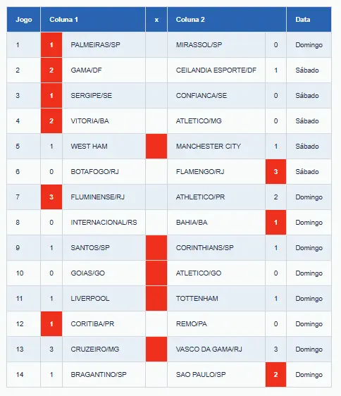 O apostador deve assinalar o palpite dele em cada um dos 14 jogos do concurso. Existe a opção de anotar um, dois (duplo) ou até três colunas (triplo) por jogo. Os clubes participantes estão impressos nos bilhetes emitidos pelo terminal.