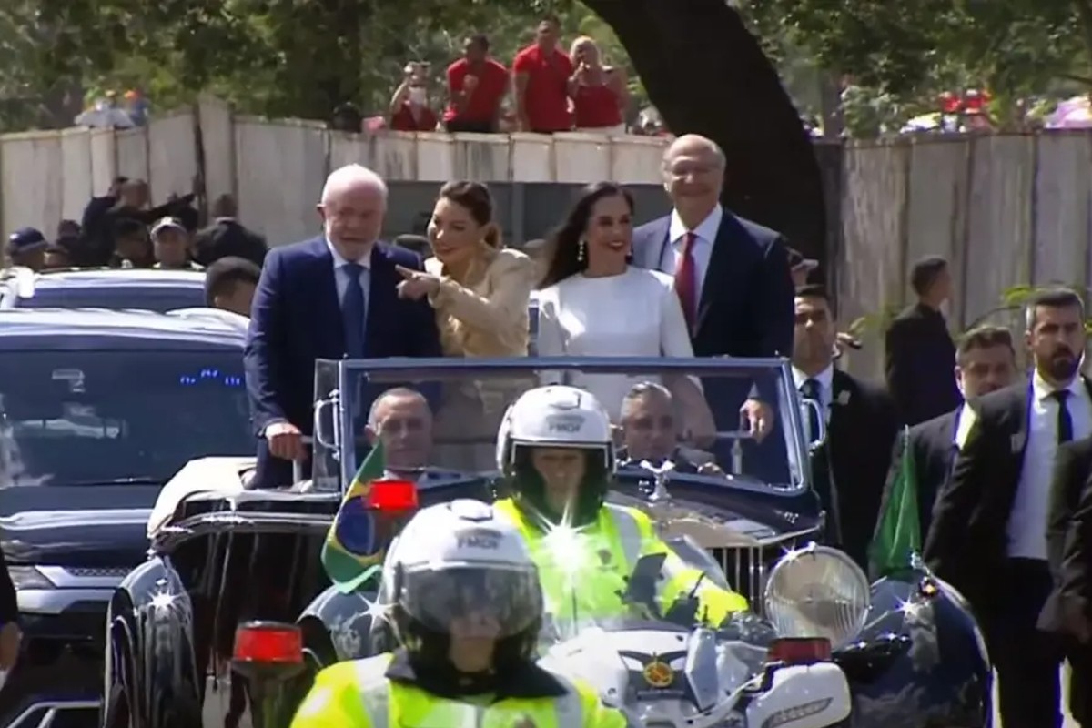 O presidente Luiz Inácio Inácio Lula da Silva optou por desfilar em carro aberto com o Rolls-Royce pela Esplanada dos Ministérios durante a cerimônia de posse. O petista, que está acompanhado da mulher, Rosângela da Silva, a Janja, chamou ainda o vice-presidente Geraldo Alckmin e sua mulher, Lu Alckmin, para participarem do trajeto no veículo.