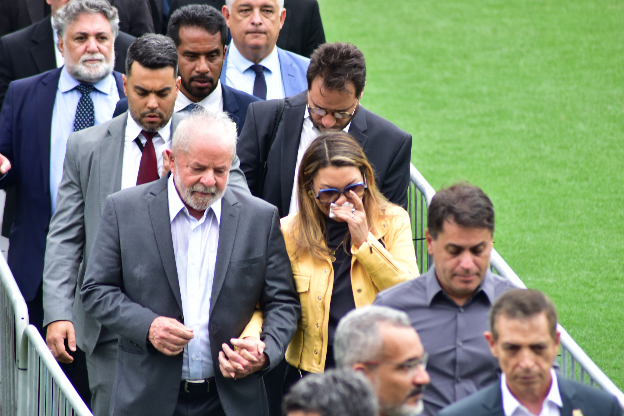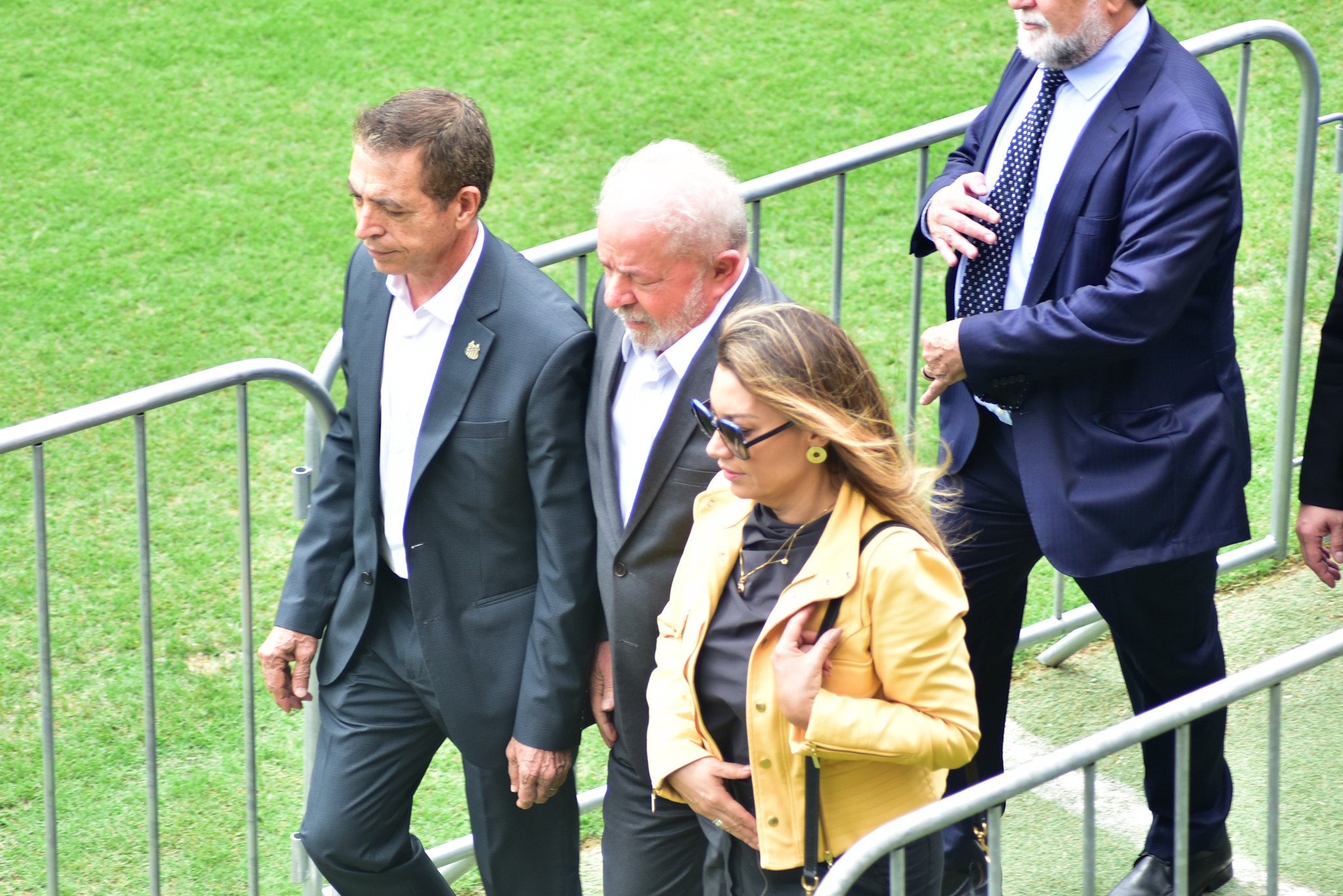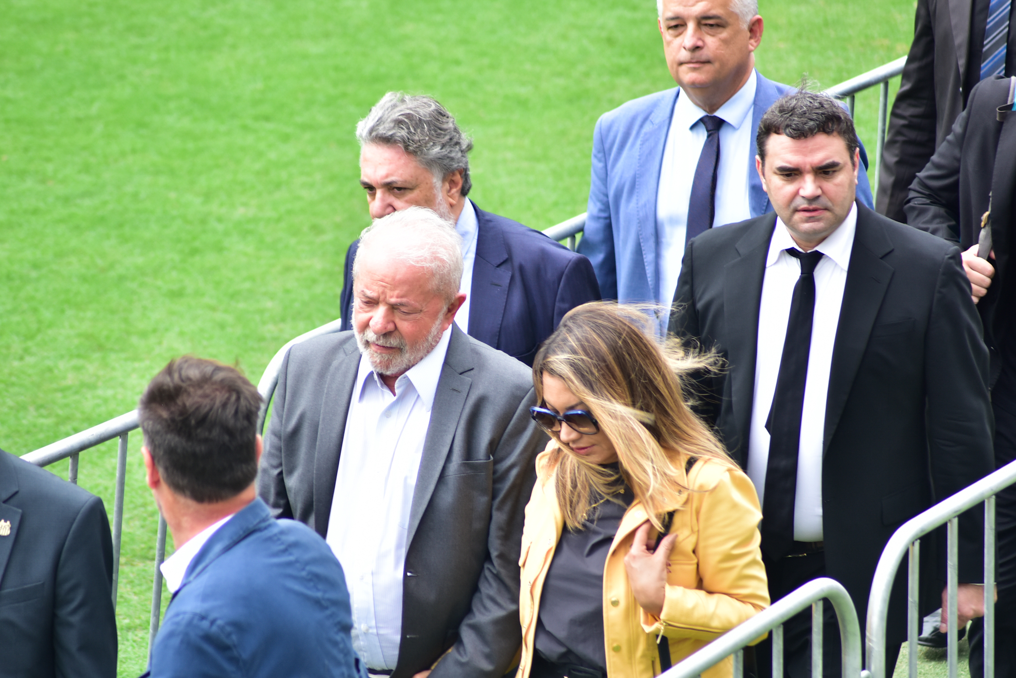 O presidente entrou no gramado às 9h12, de mãos dadas com a primeira-dama Janja e acompanhado de uma comitiva