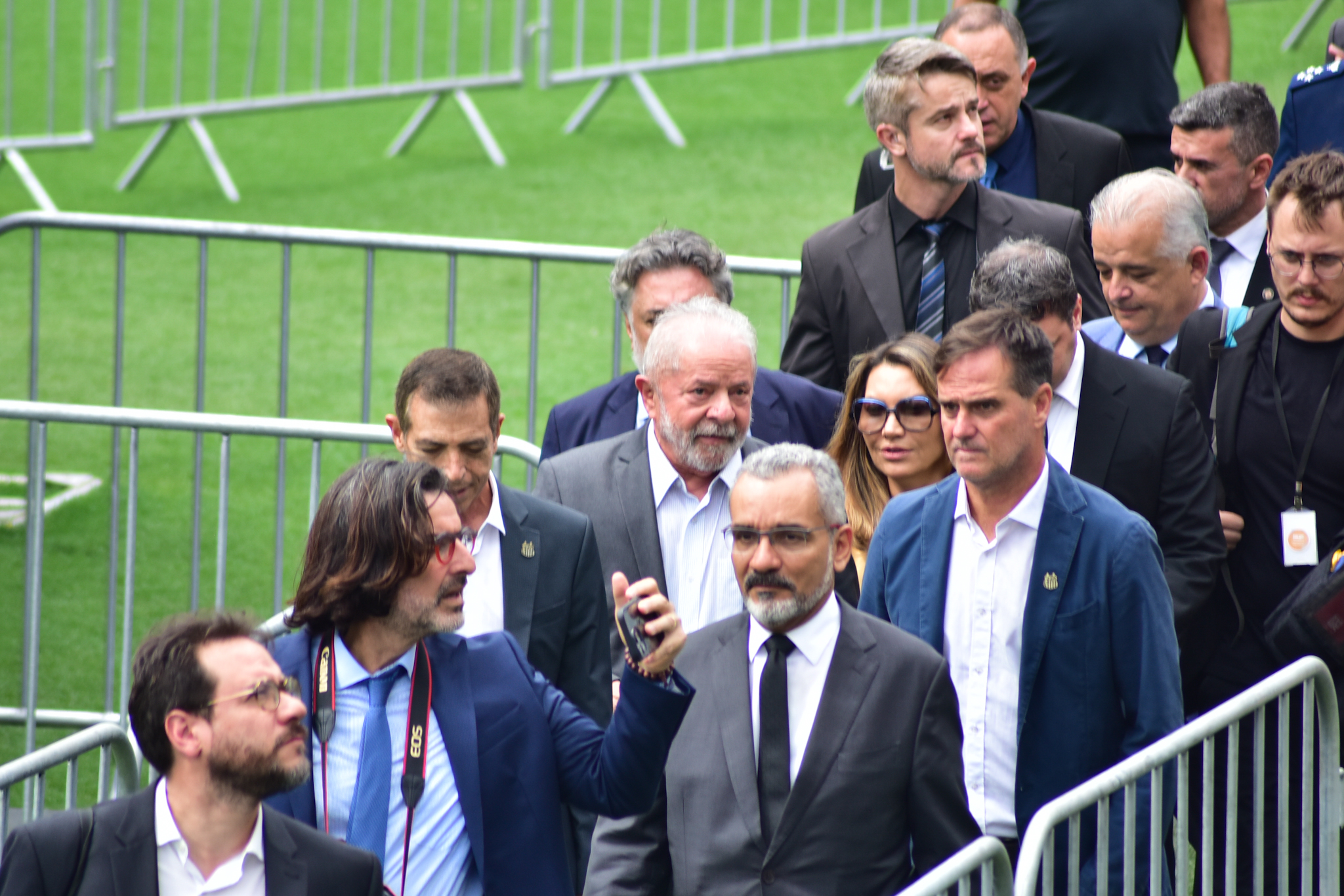 O presidente entrou no gramado às 9h12, de mãos dadas com a primeira-dama Janja e acompanhado de uma comitiva.