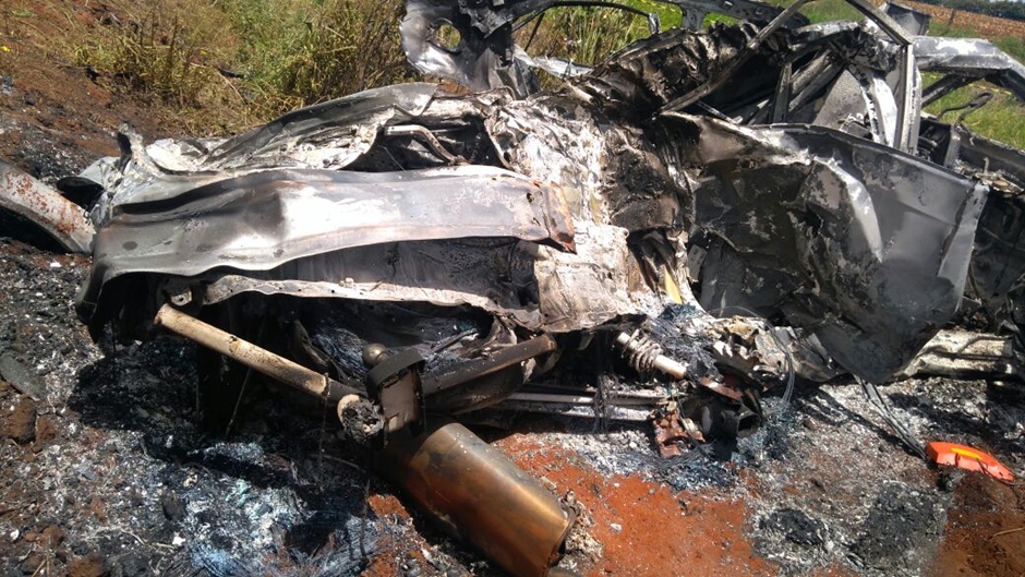 Com o acidente, corolla pegou fogo. Os passageiros do veículo, uma mulher de 35 anos e uma criança de 4 anos, morreram carbonizados