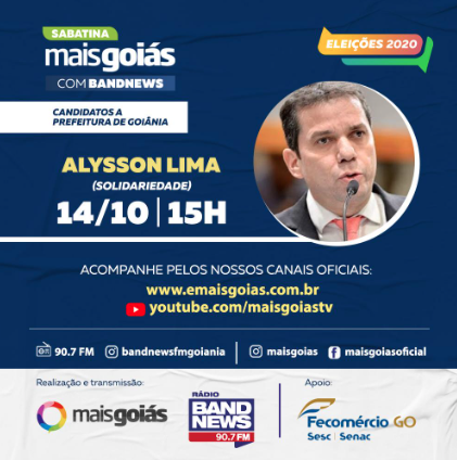 Tem início nesta quarta-feira (14), às 15h, a sabatina do Mais Goiás e da Band News FM com candidatos à Prefeitura de Goiânia. O evento possui apoio da Fecomércio.