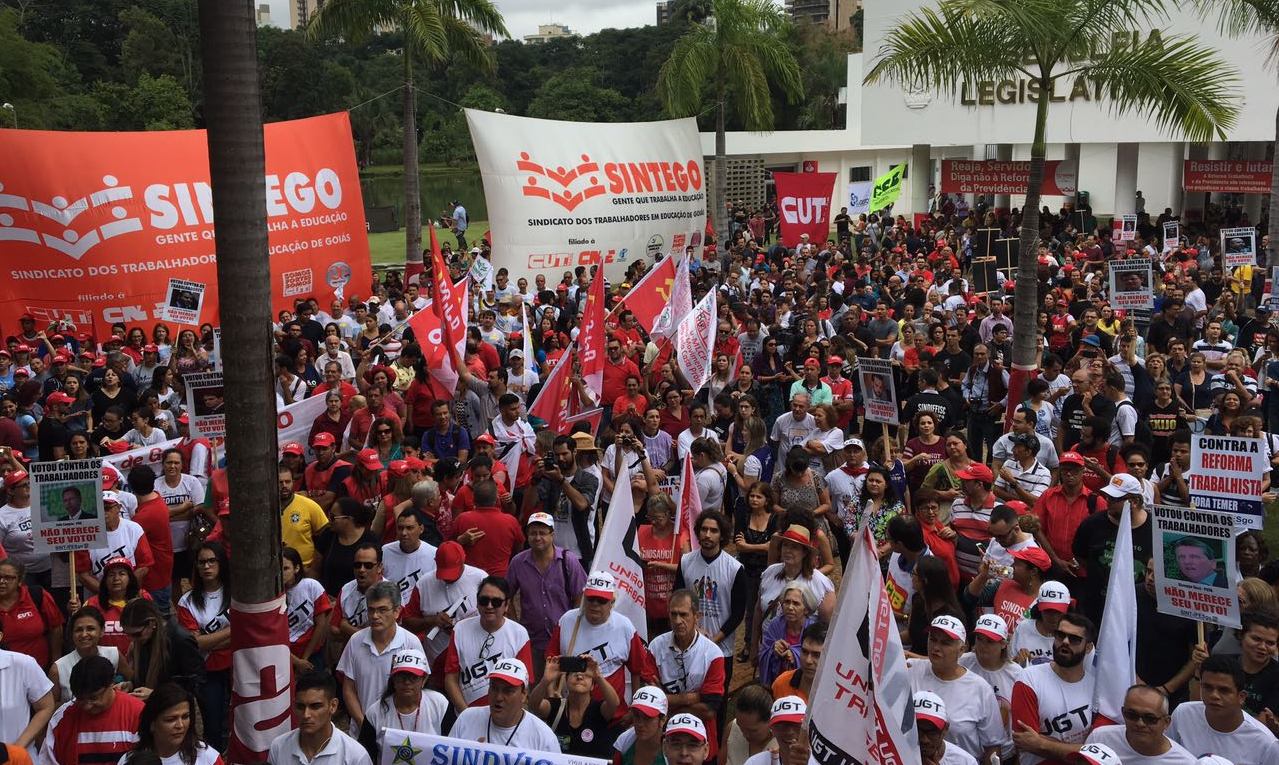 Os atos relacionados à Greve Geral organizados por diversas frentes sindicais mobilizaram centenas de pessoas em frente a Assembleia Legislativa de Goiás (Alego), em Goiânia. Os protestos foram realizados em todo o País, por diversas categorias, contra as reformas trabalhista e previdenciária em tramitação no Congresso Nacional.