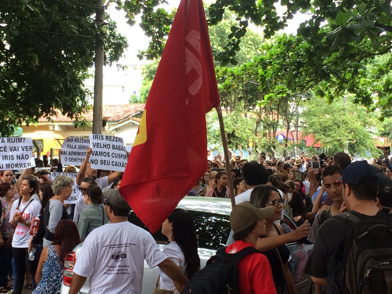 Em frente à sede da Secretaria Municipal de Educação e Esporte (SME), professores e outros servidores da Educação protestaram e decidiram pela manutenção da greve da categoria.