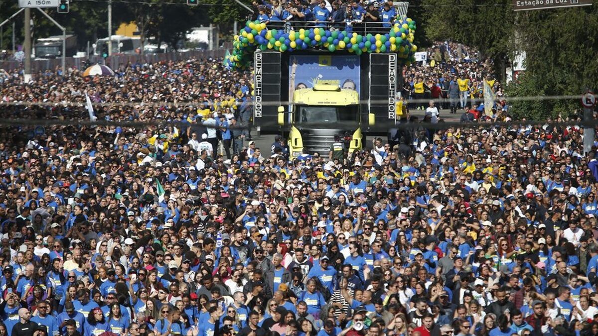 Acompanhado do apóstolo Estevam Hernandes, da Igreja Renascer em Cristo, o prefeito de São Paulo, Ricardo Nunes discursou de um carro de som. Dizendo estar feliz e emocionado, Nunes pediu orações pelas pessoas afetadas pela catástrofe climática no Rio Grande do Sul. “Que a gente possa colocar os nossos irmãos do Rio Grande do Sul em nossas orações, para que eles tenham de todos nós uma energia muito positiva”, conclamou o prefeito, que estava junto com a esposa, Regina.