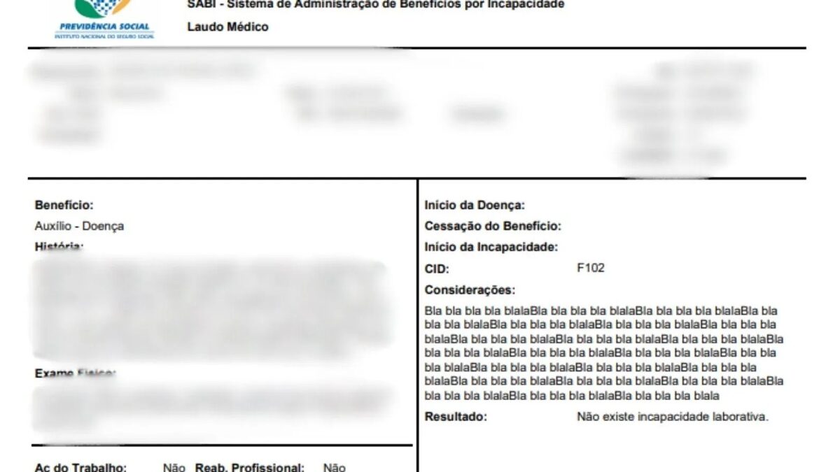 Conforme apurado pelo veículo de comunicação, o homem pediu o auxílio-doença em 2022. À época, ele relatou agravamento de dependência química, além de ansiedade e insônia. Naquele momento, o médico escreveu “bla, bla, bla”… Em 2023, ele fez um novo pedido e recebeu outra negativa com as mesmas considerações.
