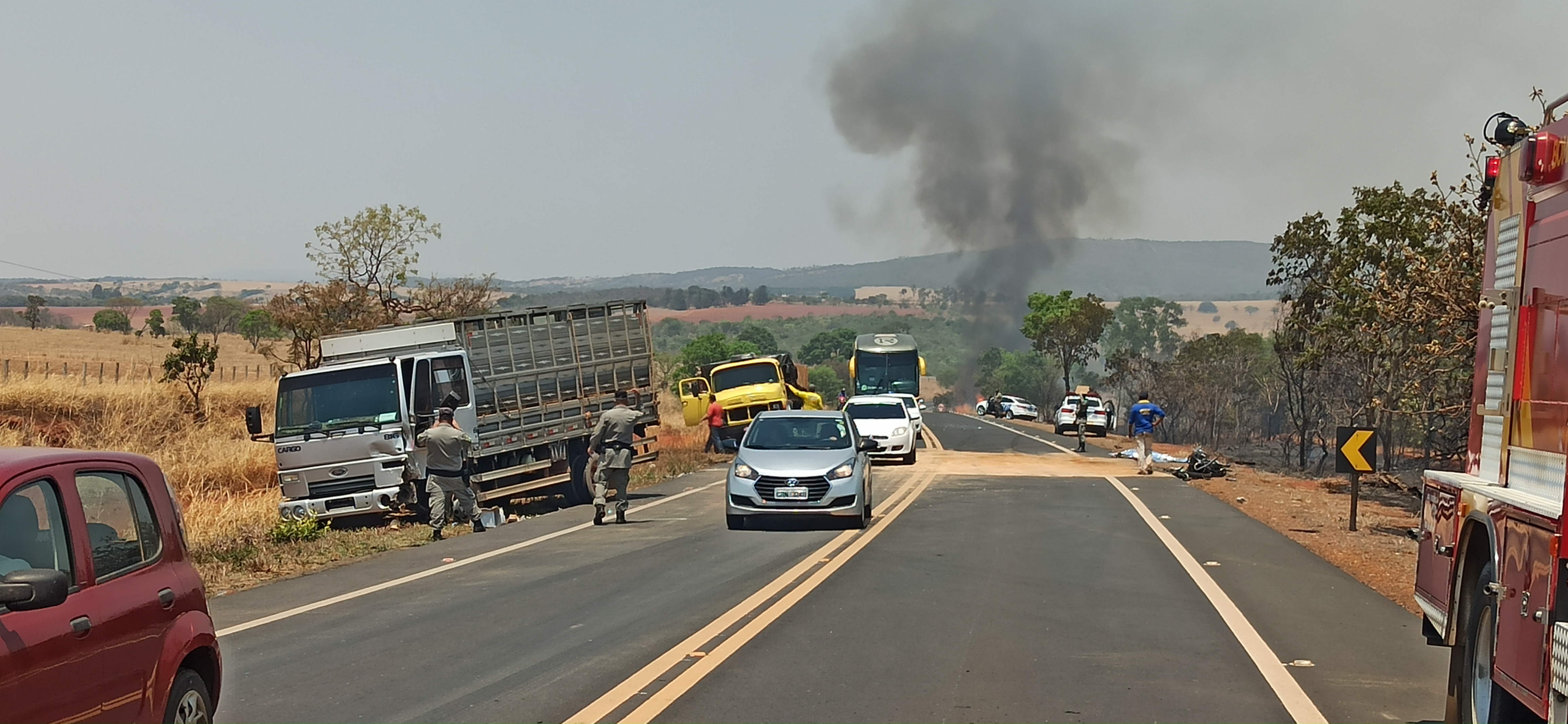 Motociclista morre após colidir frontalmente contra caminhão na GO-139