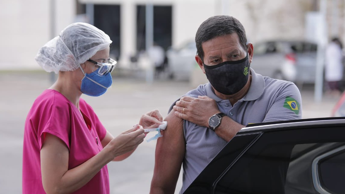 O vice-presidente Hamilton Mourão (PRTB) tomou a segunda dose da vacina contra a Covid-19, nesta segunda-feira (26). Além de anunciar a imunização, pelas redes sociais o general defendeu a vacinação, o distanciamento e o uso de máscara.