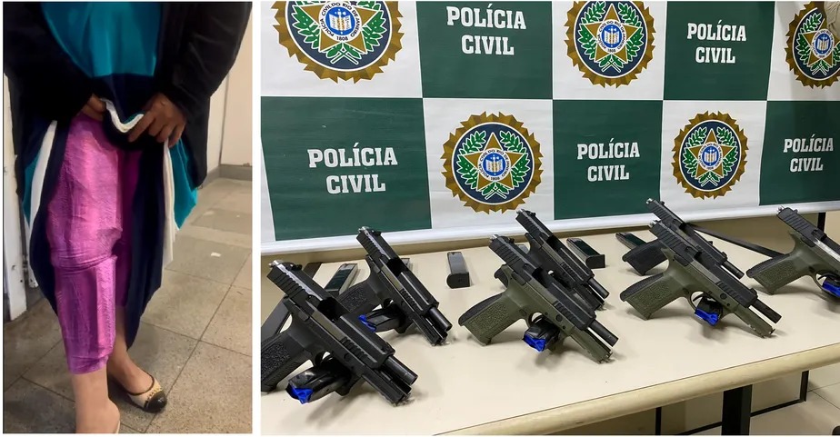Mulher é presa com sete pistolas escondidas sob a roupa, no Rio de Janeiro