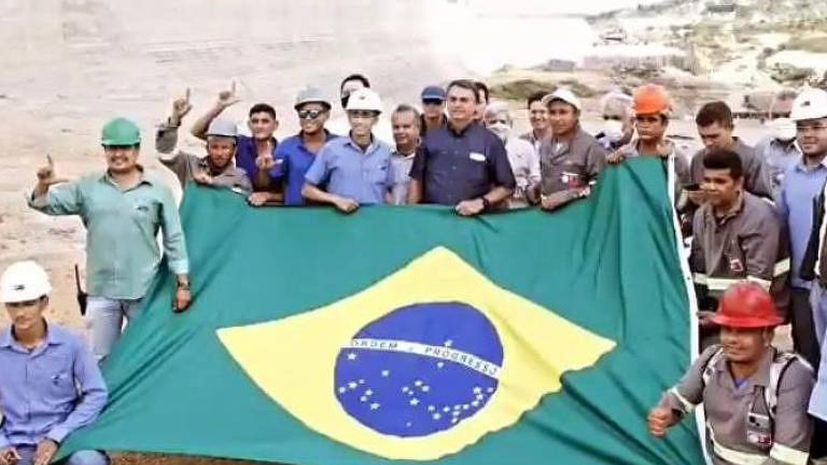 Outro trabalhador presente na foto fazendo o gesto com as mãos é o técnico em segurança do trabalho Egildo Junior. Ele está à esquerda na imagem, de camisa verde e capacete. Seu Instagram também registra uma foto com o presidente, comentada na quinta-feira (24) com a mesma bandeira do Brasil:
