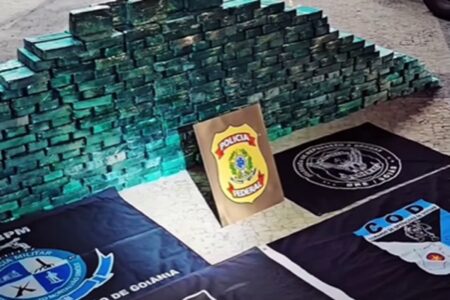TRÁFICO DE DROGAS Meia tonelada de cocaína é apreendida antes de chegar à Goiânia De acordo com as corporações envolvidas, a apreensão representa um prejuízo milionário para o tráfico de drogas há 7 mêss