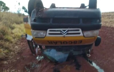 CAPOTAMENTO Acidente com van escolar deixa três crianças feridas na GO-184 em Jataí Veículo que transportava 13 crianças capotou enquanto levava alunos para a escola há 2 anos