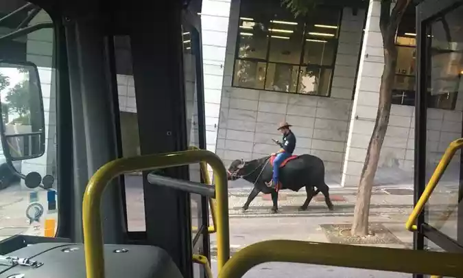 Minas Gerais Influenciador digital montado em búfalo passeia no centro de Belo Horizonte No sábado (29), o influenciador montou no búfalo e foi à Igreja São José há 2 anos