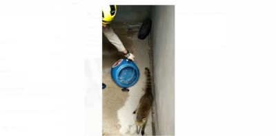 O animal estava em uma residência do Entorno do Distrito Federal. Os bombeiros utilizaram uma puça para fazer o resgate