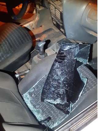 A suspeita quebrou também o para-brisas de um outro veículo parado perto e o medidor de energia de uma residência