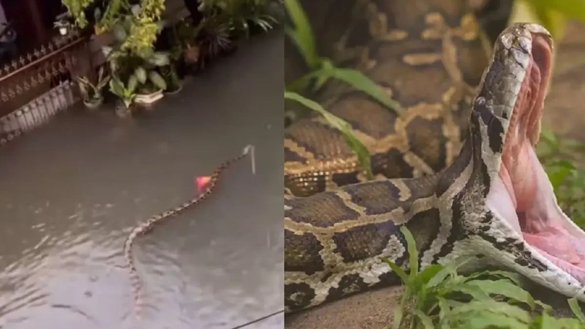 Pítons gigantes aparecem em ruas alagadas de Bali durante chuvas; assista ao vídeo
