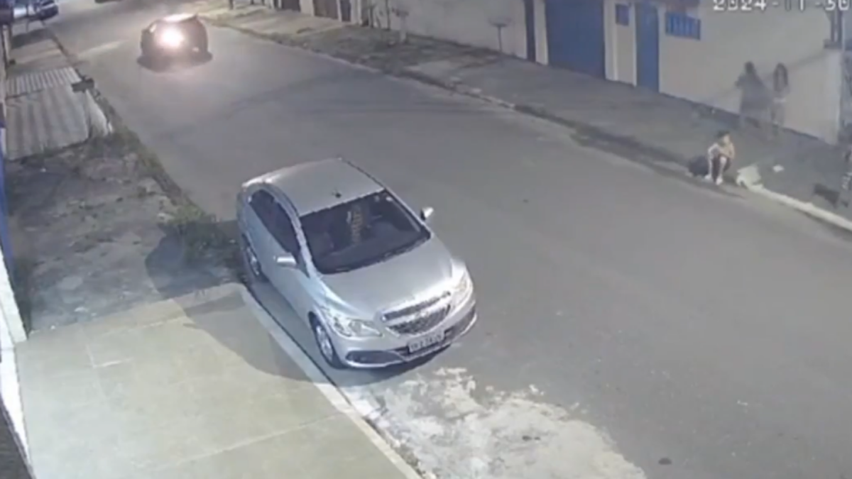 Imagens de câmeras de segurança mostram o momento em que o carro de Claudio De Fontes Alves, 61 anos, passa pela rua com a seta ligada para o lado errado. Uma criança grita: “A seta”, enquanto outra alerta: “Acende o farol”.