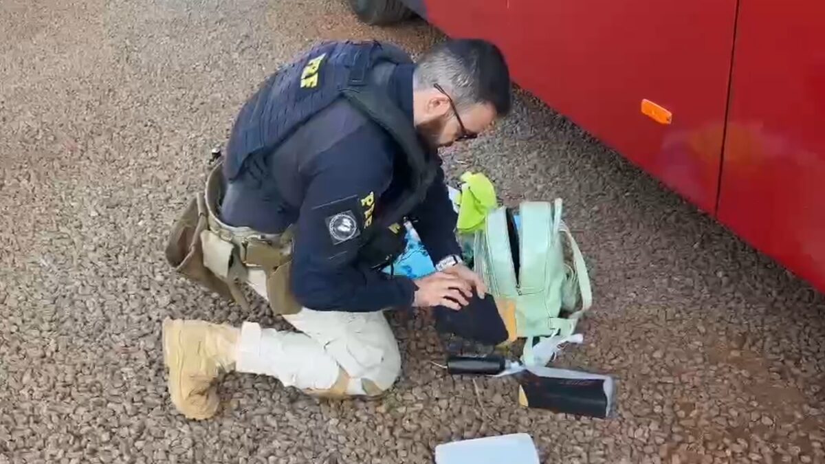 PRF encontra 3 kg de cocaína em mala de passageira de ônibus, em Jataí