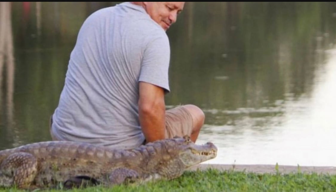 Um fato curioso chama a atenção dos pedestres que circulam pelo parque “Pinicão Universitário” em Rio Branco, no Acre. Há mais de cinco anos o professor Aldecino Oliveira vai ao local para cultivar sua amizade improvável com um jacaré, apelidado por ele de Tião. A interação entre eles segue um roteiro: Aldecino o chama por um som específico, o animal vem ao seu encontro, o professor pesca alguns peixes e fica o alimentando.