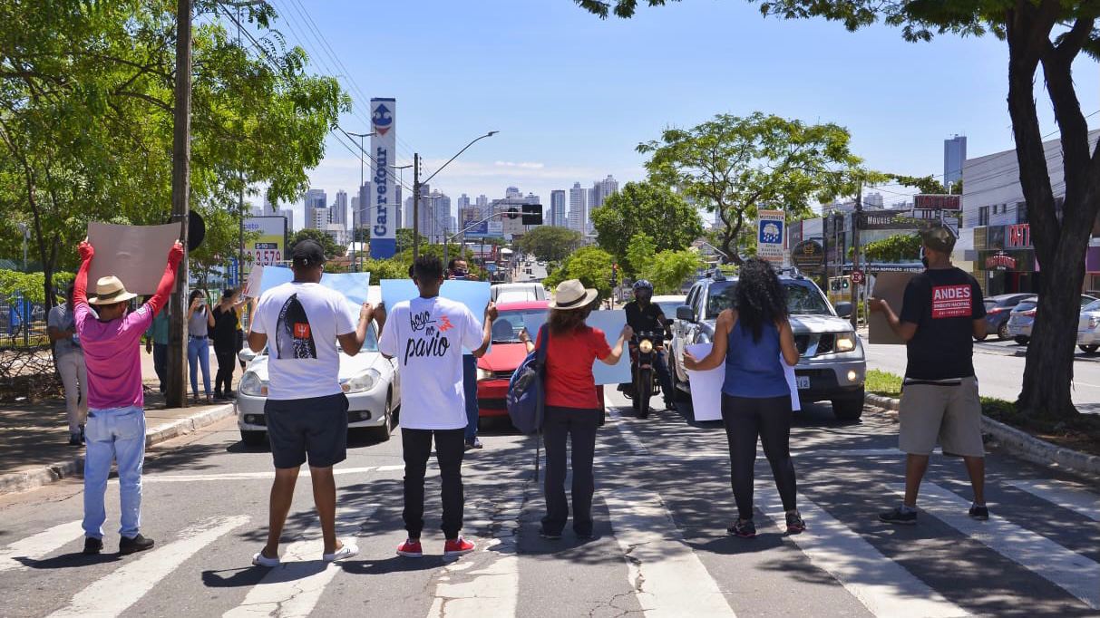 Um grupo de manifestantes se reuniu, na manhã deste sábado (21), em frente ao Carrefour da Avenida T-9, em Goiânia, em protesto contra o assassinato de João Alberto Silveira Freitas, homem negro que foi espancado até a morte em um supermercado da rede Carrefour, em Porto Alegre, na última quinta-feira (19).