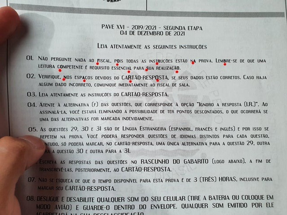 Uma prova aplicada na Universidade Federal de Pelotas (UFPel), no Rio Grande do Sul tem gerado polêmica por ter a inscrição “fora Bolsonaro” formada com caracteres em negrito de cada palavra. A avaliação do Programa de Avaliação da Vida Escolar (PAVE) foi feita no último sábado (4).