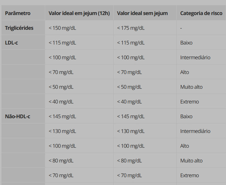 - Alto risco: LDL abaixo de 70 mg/dL