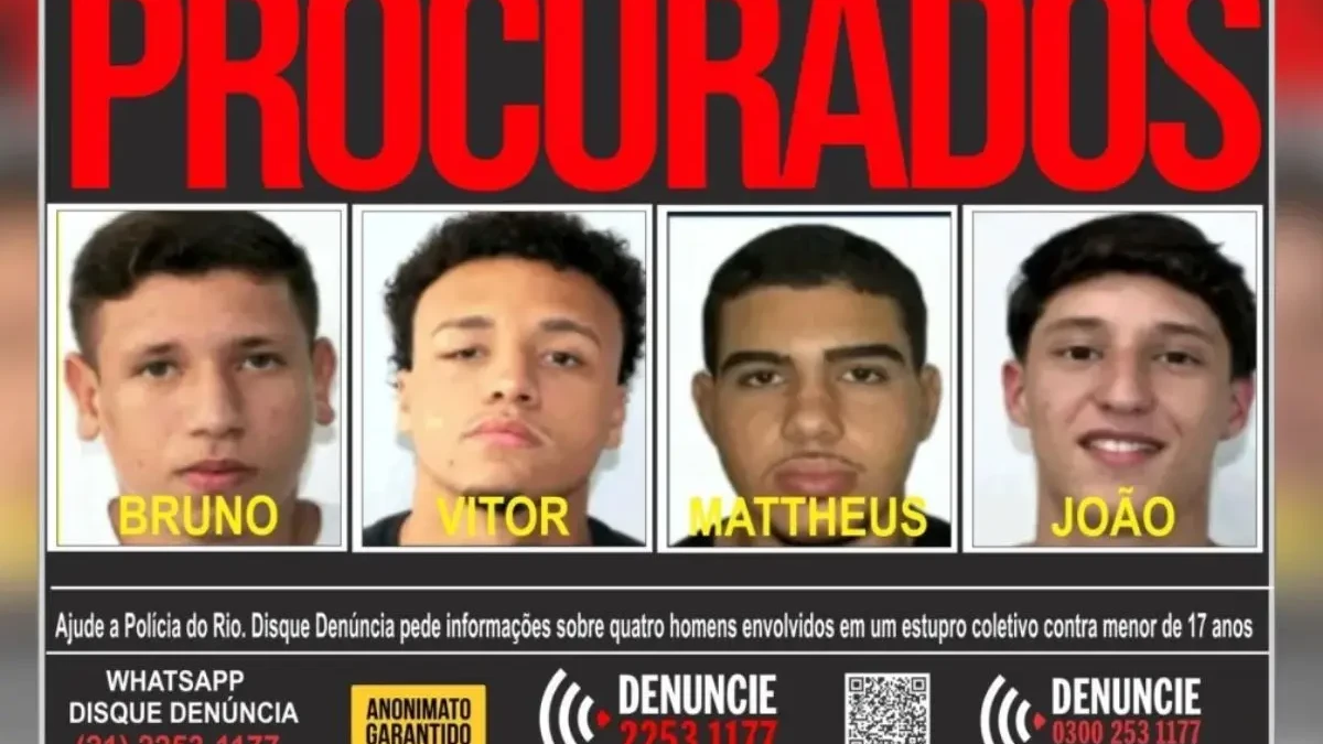 A Polícia Civil do Rio de Janeiro divulgou as fotos de quatro homens suspeitos de envolvimento com um estupro coletivo em Copacabana, no Rio de Janeiro. O crime ocorreu no fim de janeiro e a vítima é uma menor de idade.