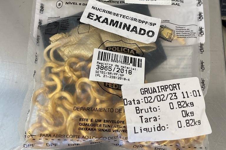 O mais barato dos lotes aceita lance mínimo de R$ 60 mil e tem duas correntes de ouro puro —uma de 621,2 gramas e outra de 373,9 gramas. Segundo a cotação mais recente do ouro na B3, um grama do material vale R$ 314,99.