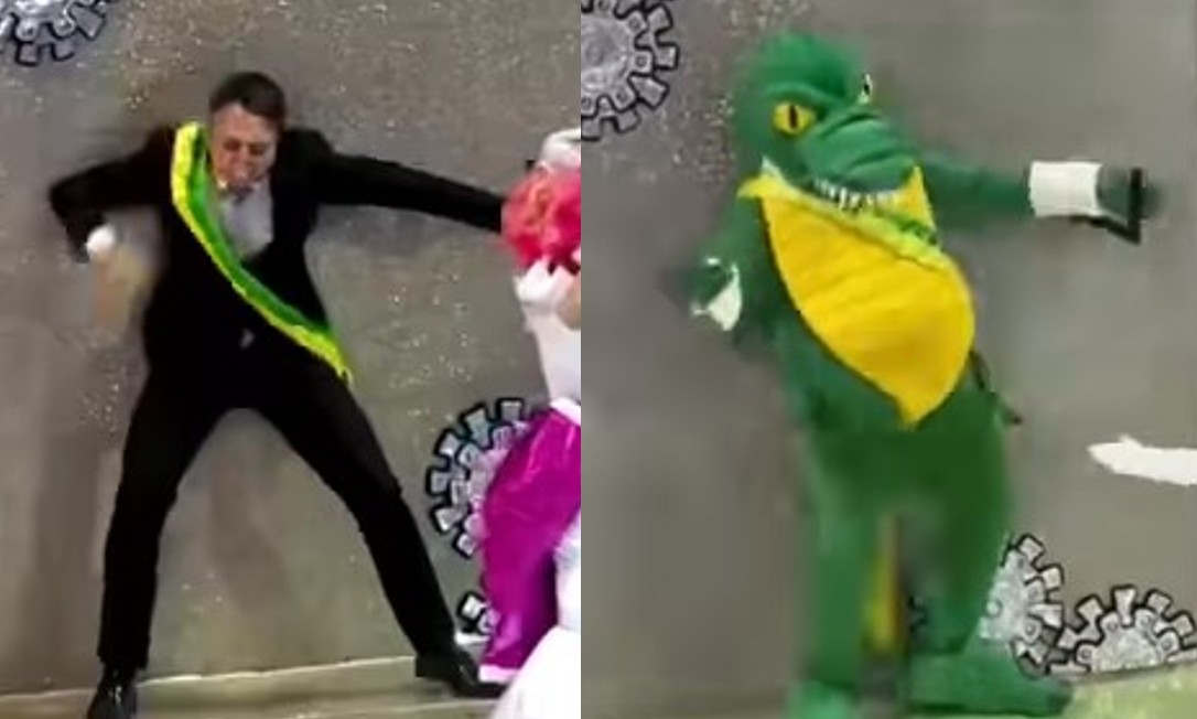 Representado como jacaré, Bolsonaro diz que desfile da Rosas de Ouro foi ‘ruim’