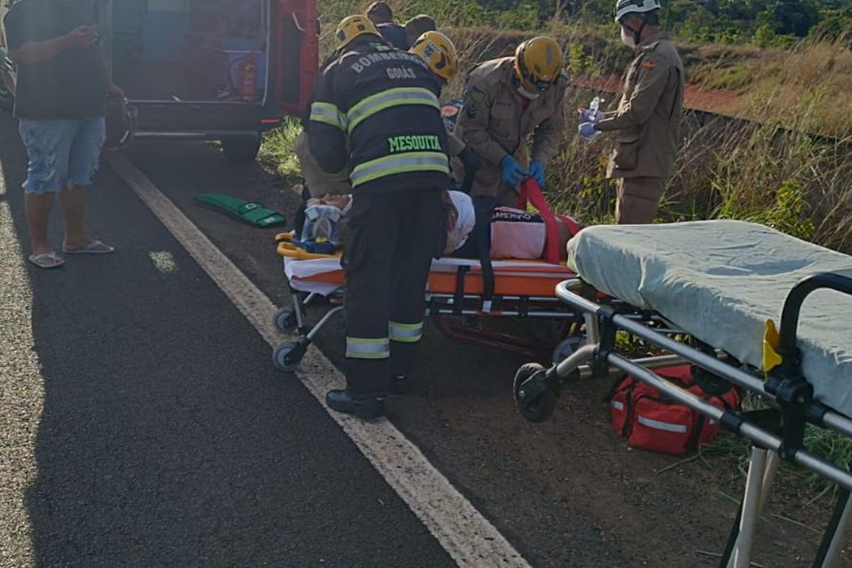 Roda se solta de carro e atinge casal sobre moto na GO-213, em Caldas Novas