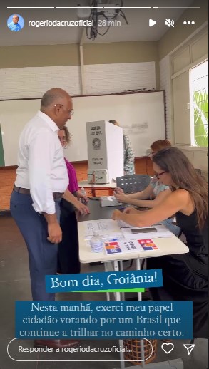 Acompanhado da primeira-dama Thelma Cruz, o prefeito de Goiânia, Rogério Cruz, votou há poucos minutos em seção eleitoral que fica na Faculdade Araguaia. Em seu perfil no Instagram, Rogério disse esperar que “o Brasil continue a trilhar no caminho certo”.