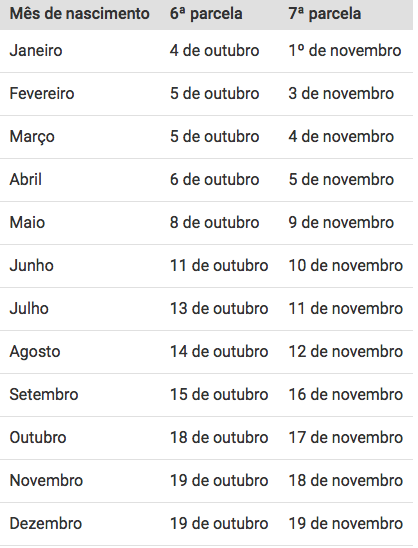 Veja o calendário de pagamento da sexta e da sétima parcela: