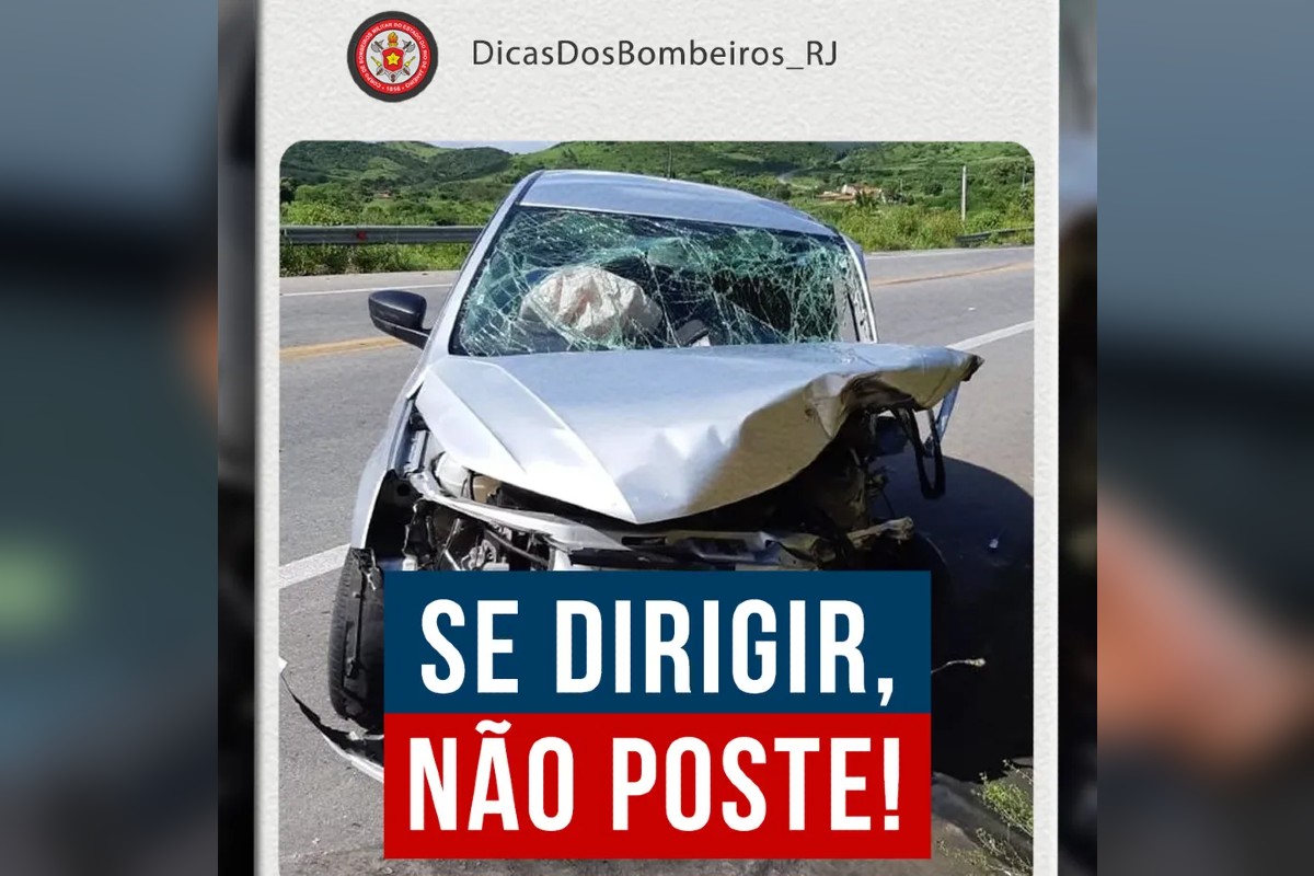O Corpo de Bombeiros do Rio lançou a nova etapa da campanha “Não Arrisque sua Vida por Likes”. A segunda fase é focada no alerta aos motoristas, que não devem usar o celular enquanto dirigem. Um dos focos será a postagem que algumas pessoas fazem enquanto estão no volante. Os militares vão usar as redes sociais para conscientizar a população de que mortes provocadas por uso de celular ai volante são uma realidade no trânsito.