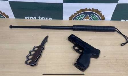 Investigadores encontraram no apartamento do suspeito, Fred Henrique Moreira Lima, um bastão retrátil, um soco inglês e uma réplica de pistola.