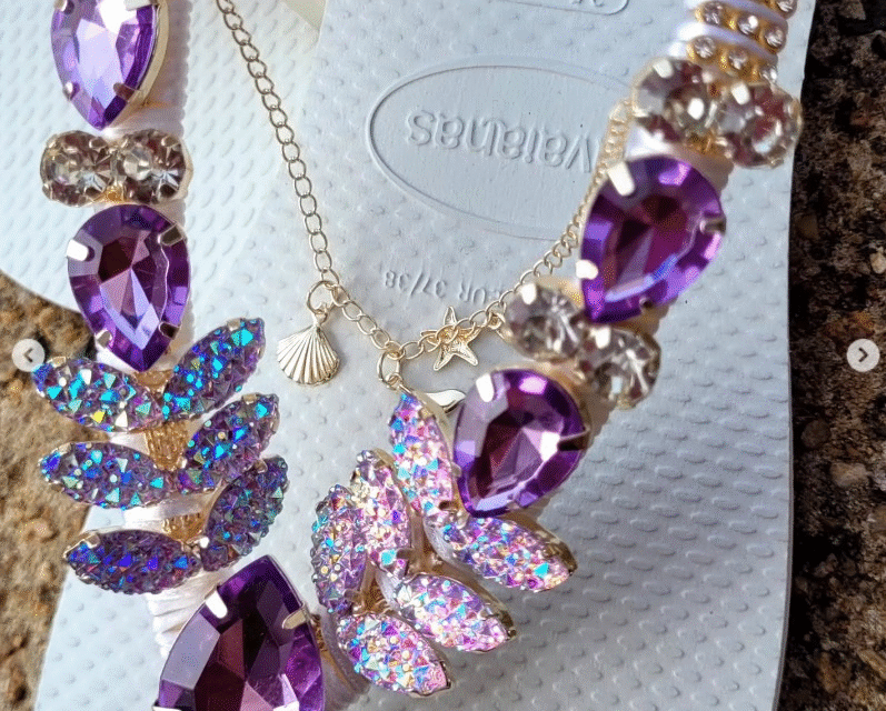 Chinelos decorados da 'Su Entre Linhas' variam entre R$ 150 e R$ 180