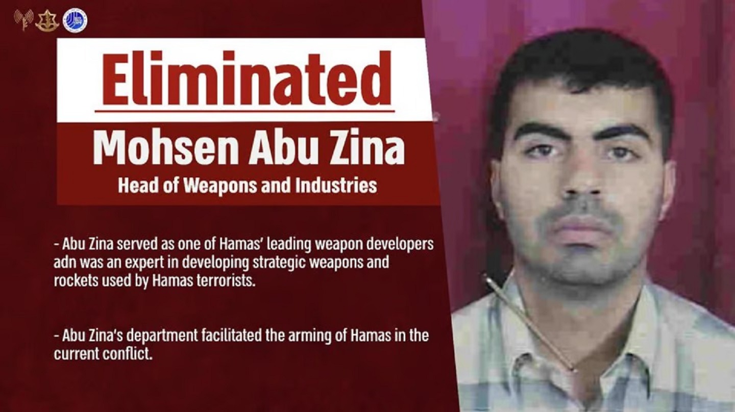 “Mohsen Abu Zina era um dos principais responsáveis pelas armas do Hamas e especialista no desenvolvimento de armas estratégicas e foguetes utilizados pelos terroristas do grupo”, afirmou o Exército em comunicado.