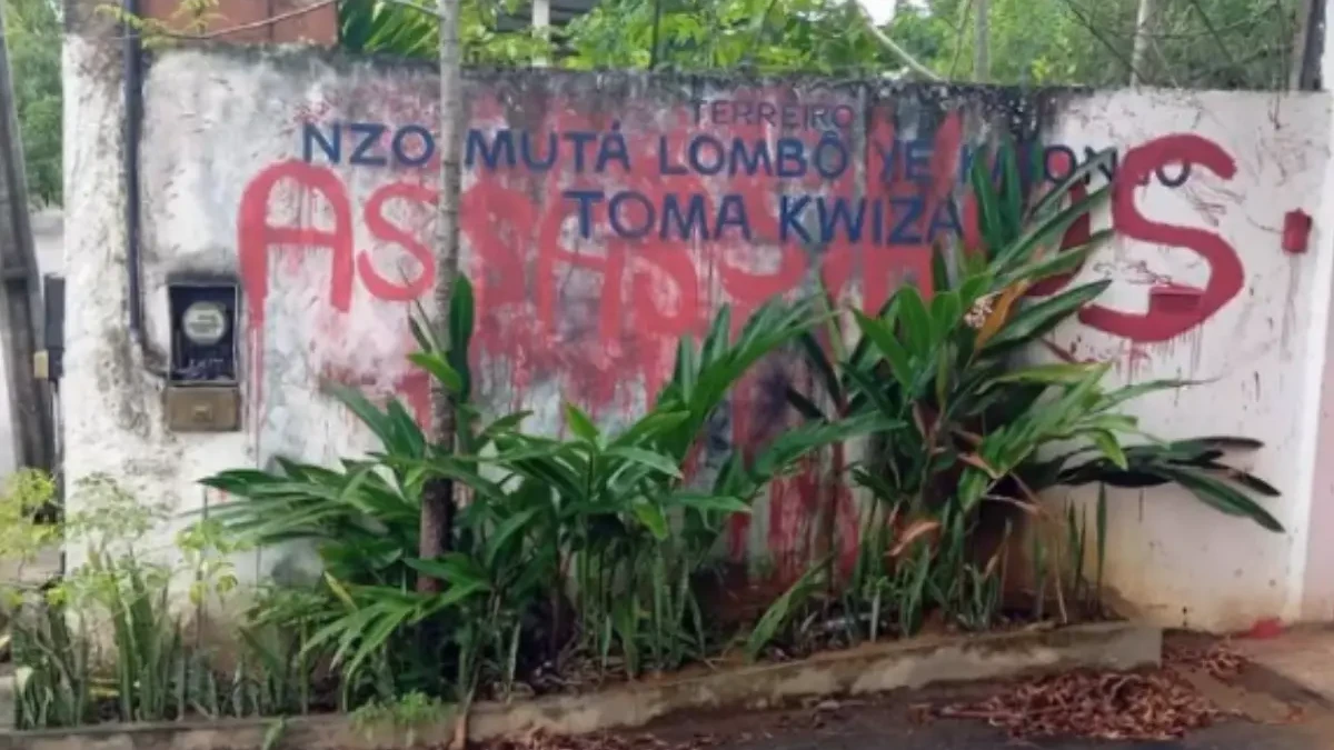 (Folhapress) Um terreiro de candomblé em Salvador (BA) foi alvo de pichações no último sábado (17). Conforme imagens divulgadas pelo templo Nzo Mutá Lombô ye Kayongo Toma Kwiza, as paredes de entrada foram pichadas com as palavras “Assassinos” e “Jesus”.