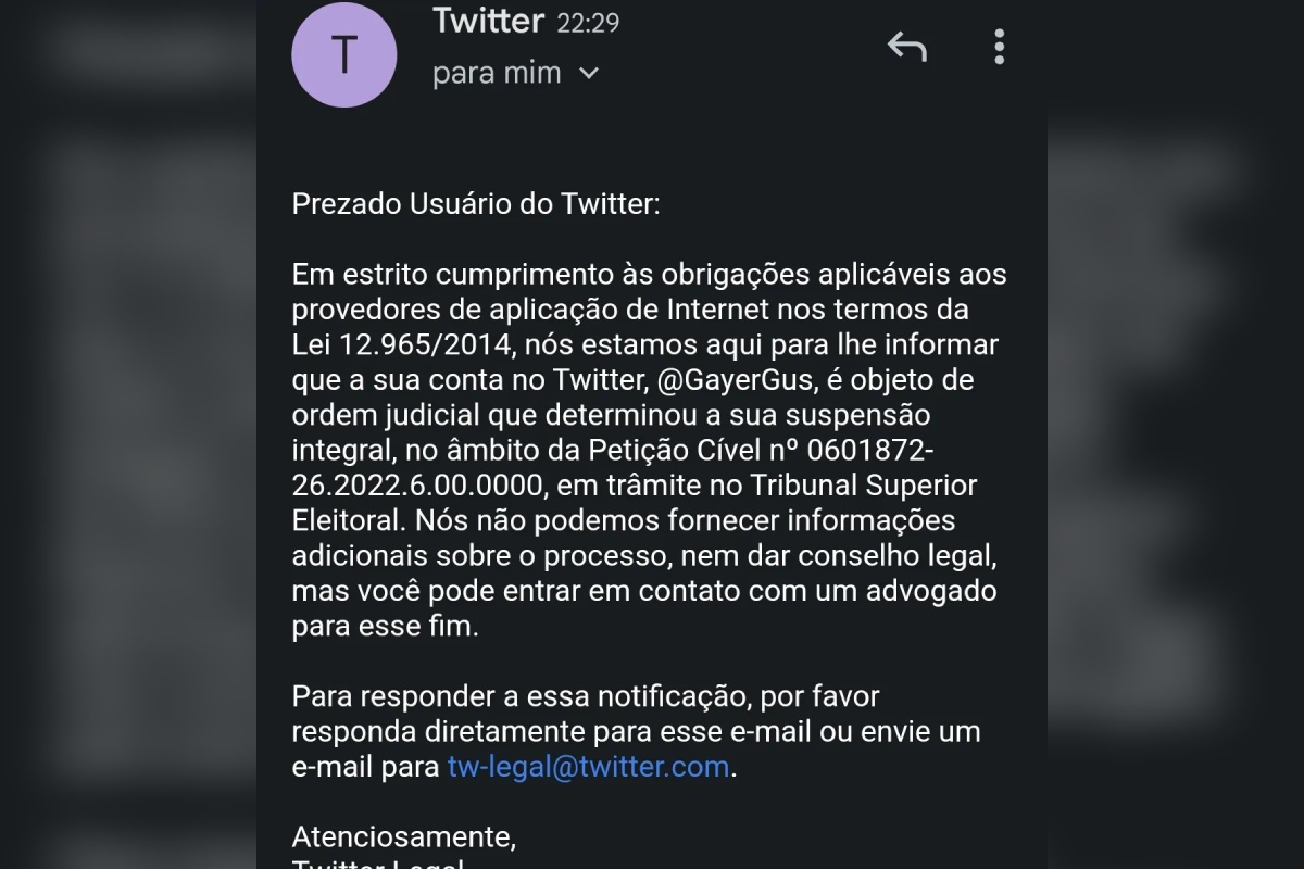 A rede social informou que cumpriu uma ordem judicial do Tribunal Superior Eleitoral (TSE), que determinou a suspensão integral do perfil do influencer bolsonarista.