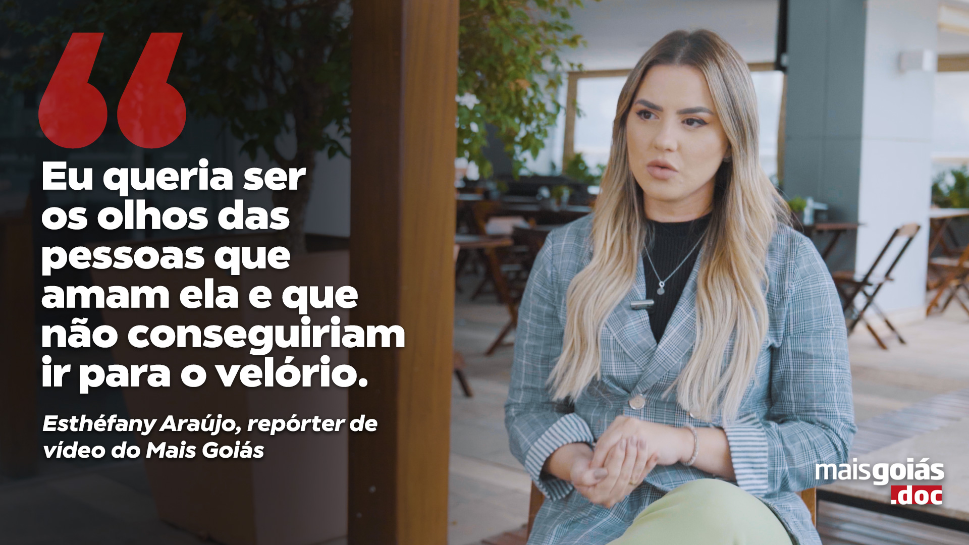Esthéfany Araújo, repórter de vídeo do Mais Goiás, também coordenou as apurações da cobertura, só que ela ficou responsável pela parte de vídeo – tanto as lives que aconteciam em tempo real, quanto a reportagem final que foi publicada no dia seguinte do velório da cantora.