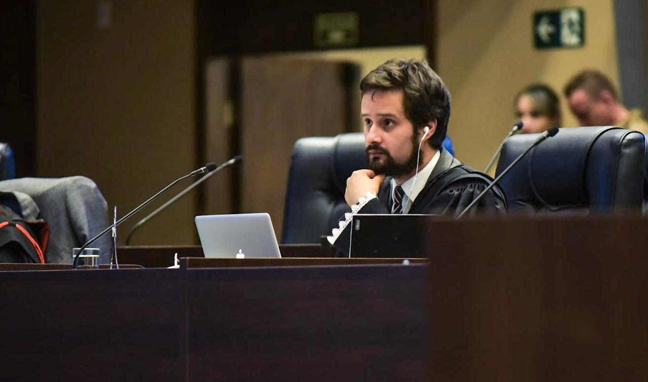 Durante coletiva de imprensa no primeiro dia de julgamento do caso Valério Luiz, na manhã desta segunda-feira (7), a promotora de Justiça Renata Sousa destacou o papel de Valério Filho, que atua como assistente de acusação no processo. Segundo ela, além de contribuir tecnicamente por ser formado em Direito, o profissional também é responsável por dar vida ao pai nos autos.