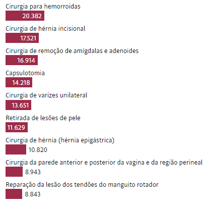 Confira abaixo as 20 maiores filas de cirurgias eletivas no país: