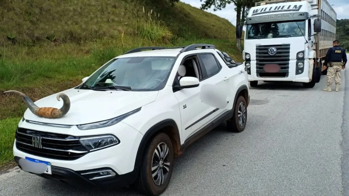 Vídeo: PRF flagra picape com chifre de boi em Florianópolis; motorista leva multa gravíssima