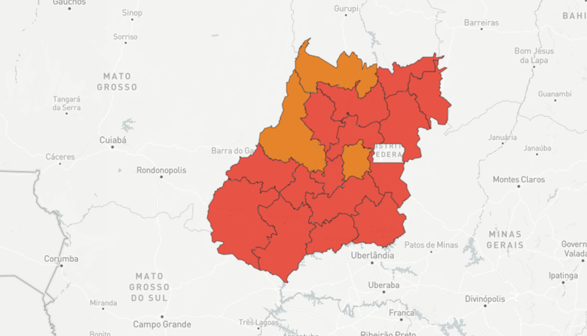 Porém, a região de Serra da Mesa, composta por municípios como Niquelândia e Uruaçu, que estava no cenário laranja na semana anterior, agora aparece no vermelho. Conforme o mapa atualizado, as regiões que agora estão no cenário laranja são Pireneus, Rio Vermelho e Norte. Todas as outras 15 permanecem em calamidade.